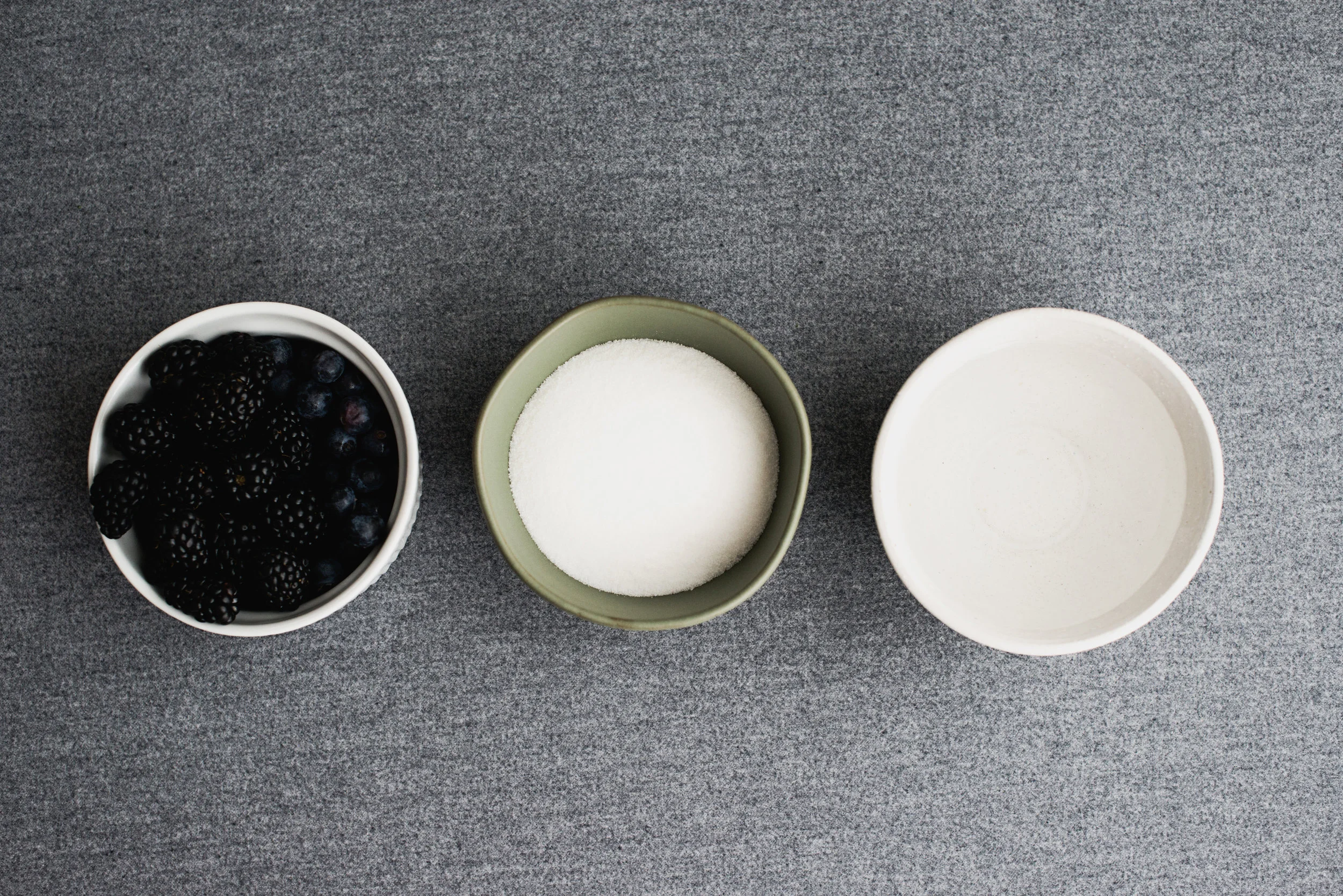 Mix the sugar, berries, and water together in a medium-sized sauce pan and simmer over low/medium heat for about 20-30 minutes, stirring occasionally. Stir more towards the end to avoid burning the berries. Remove from heat and remove seeds by straining into a glass jar or bowl. Allow the strained liquid to cool completely.